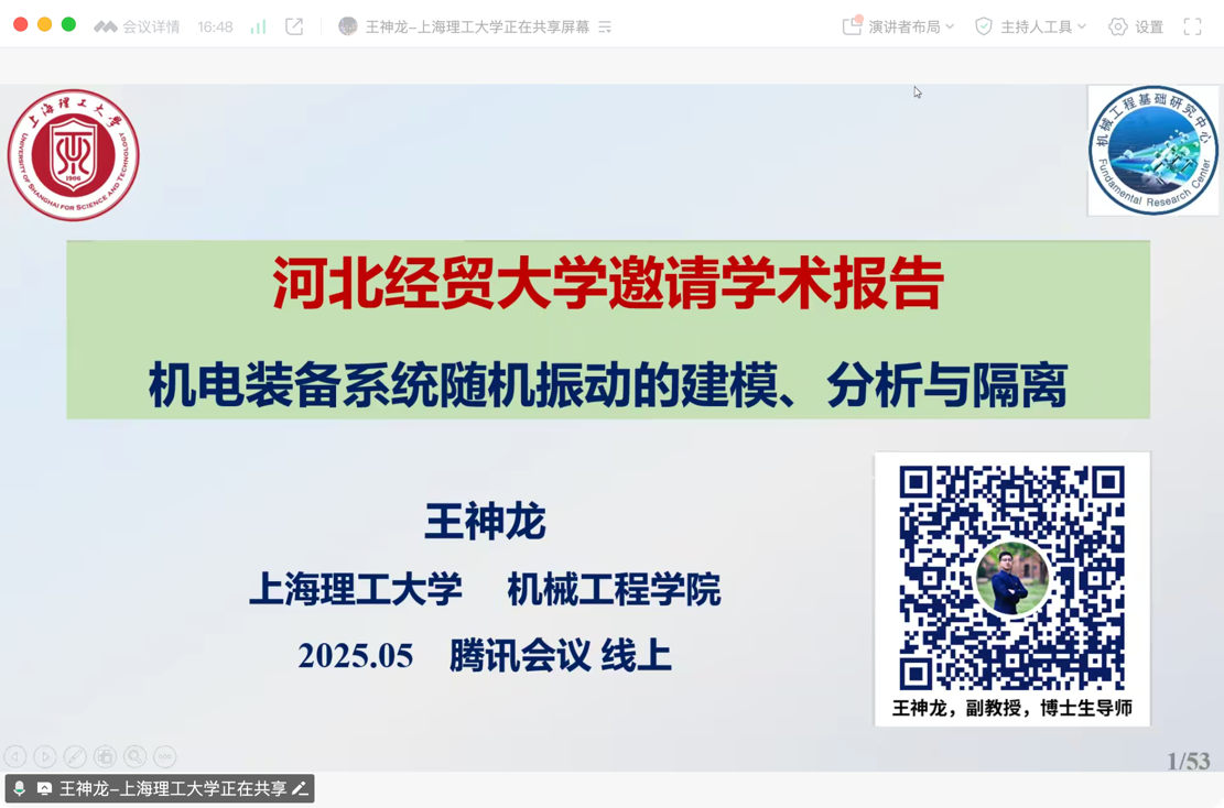 5月17日上午,上海理工大学王神龙教授应9428cn太阳集团古天乐邀请在线上作题为“机电装备系统随机振动的建模、分析与隔离”的学术报告,相关专业师生20余人参会。