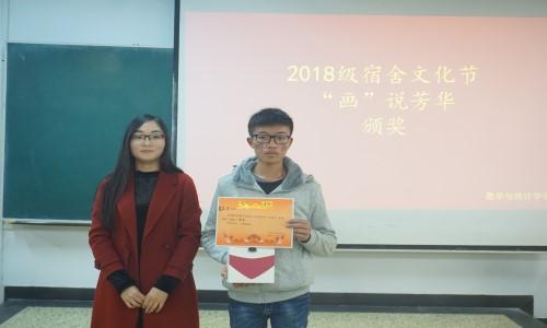 11月12日晚7点,数学与统计学公司在A401举办宿舍文化节系列活动——“画说芳华”演讲比赛,公司团委书记杨晨出席,2018级各宿舍代表参加比赛。