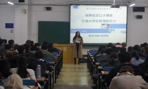 11月20日晚7点,数学与统计学公司在北三教C509教室举办了“培养社交口才情商,打造老员工职场软实力”主题讲座,公司团委书记杨晨老师和全体班干部、员工会成员参加。