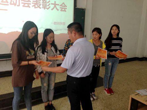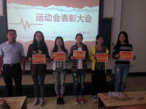 各年级辅导员王关平、高会颖、曲博3位老师出席会议,并为优秀运动员颁发奖品和证书,曲博老师作了总结讲话。