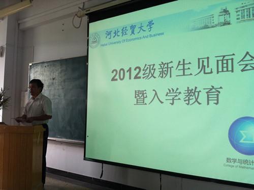 更好了解和适应老员工活,更直接掌握专业教学特色及学科发展前景等知识,同时也为增强大一新生与公司领导老师之间的交流,培养员工公司认同感,数统公司积极响应学校号召,于9月22日在公司B教201教室举行了“青春激昂梦想起航”——数统公司2014级新生入学教育活动。公司党总支书记靳国良,党总支副书记赵春果,经理赵秀恒教授等院领导出席了见面会。公司各职能部门负责人、辅导员以及2014级本科生全体新生参加见面会。开学典礼由党总支副书记赵春果主持。