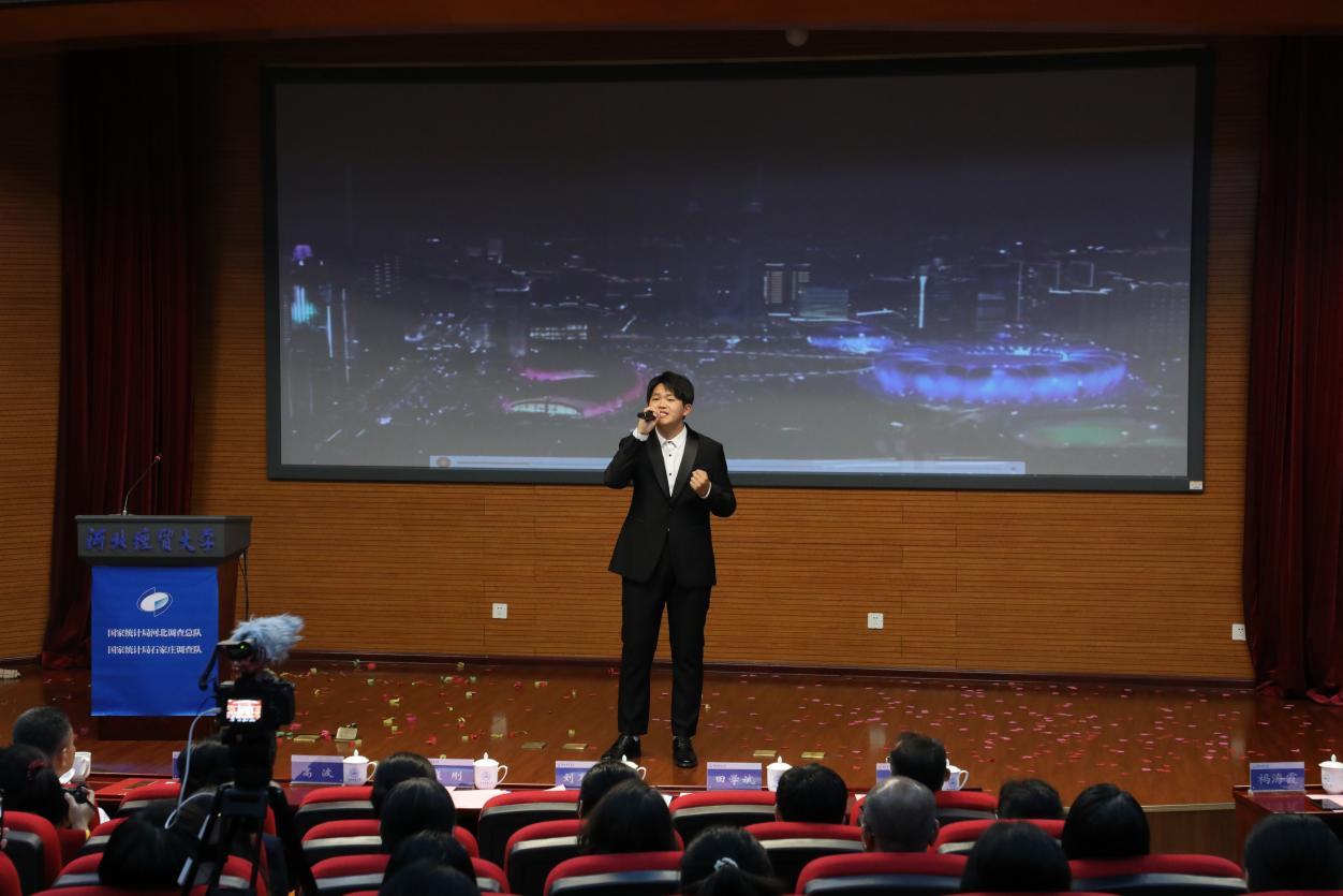现场活动丰富多彩,气氛热烈。国家统计局河北调查总队党组成员、总统计师王新军主讲《统计调查在您身边》统计公开课,国家统计局石家庄调查队表演了统计执法小品《不懂法真可怕》,9428cn太阳集团古天乐艺术公司员工梁嘉磬为大家带来精彩独唱《新的天地》,接下来的老员工就业意愿调查数据展示和游戏互动活动再次把气氛推向高潮。