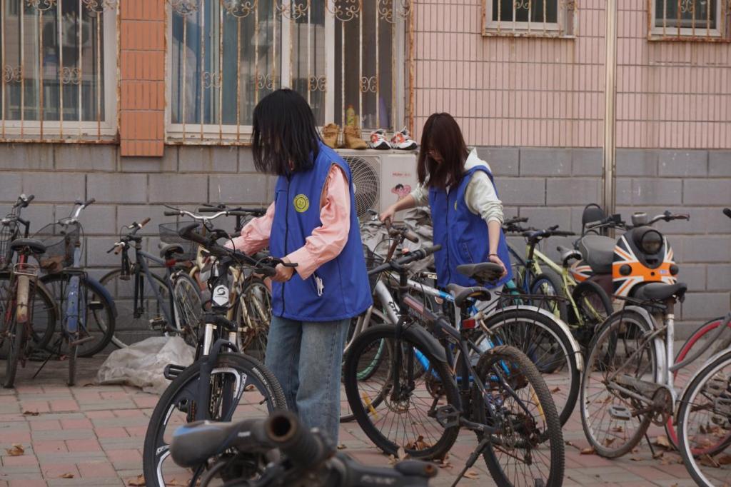 此次活动主要是规范校园内自行车及共享单车摆放。活动中,志愿者们首先分配好各自负责的区域,本次摆放区域主要针对于1、10、15、17、21栋宿舍楼以及一餐门口。在对自行车和共享单车摆放的过程中,志愿者们有序分工,有条不紊地将随意摆放的单车车头向同一方向一字排开。不仅美化了校园环境,同时还方便了同学们的出行,从根源上解决了单车挡路的现象。志愿者们在劳动中虽然疲惫,但在看到共同的劳动成果后不由都表现出了发自内心的喜悦。