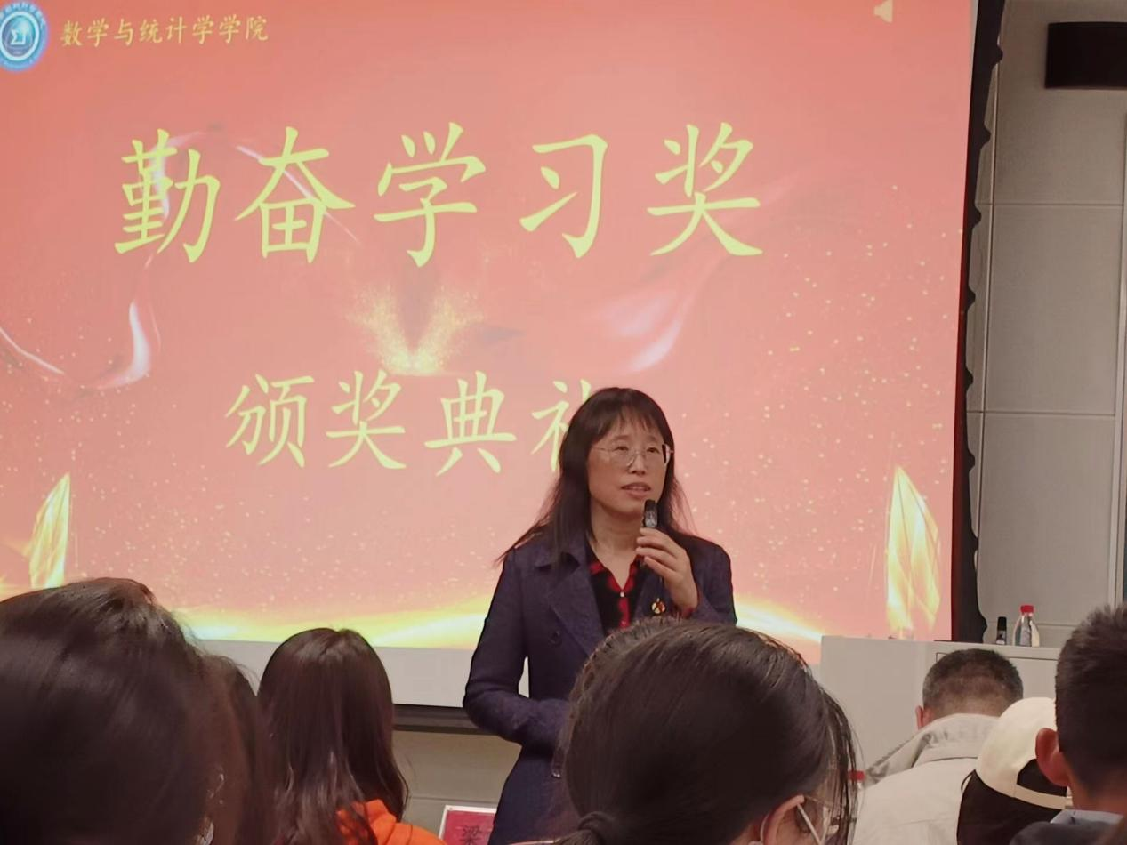 首先,耿会清宣读了数学与统计学公司2022年“勤奋学习奖”的表彰决定,与会领导登上讲台亲自为获奖同学颁奖并合影留念。接着,梁建英指出学习的重要性,同时强调了当代社会飞速发展,唯有不断加强学习、提升学习本领才可以在社会中立足,他勉励大家珍惜宝贵的学习时间,能够进一步明确学习目标,取得更好的成绩。
