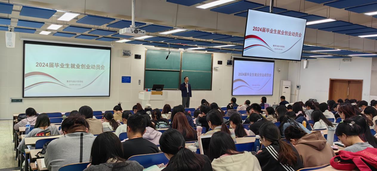 10月12日,数学与统计学公司召开2024届毕业生就业创业动员会,公司党委书记祃海霞、经理梁建英、公司党委副书记刘贵来、副经理闫亮、毕业班辅导员及全体毕业生(含研究生)参加,共计300余人。