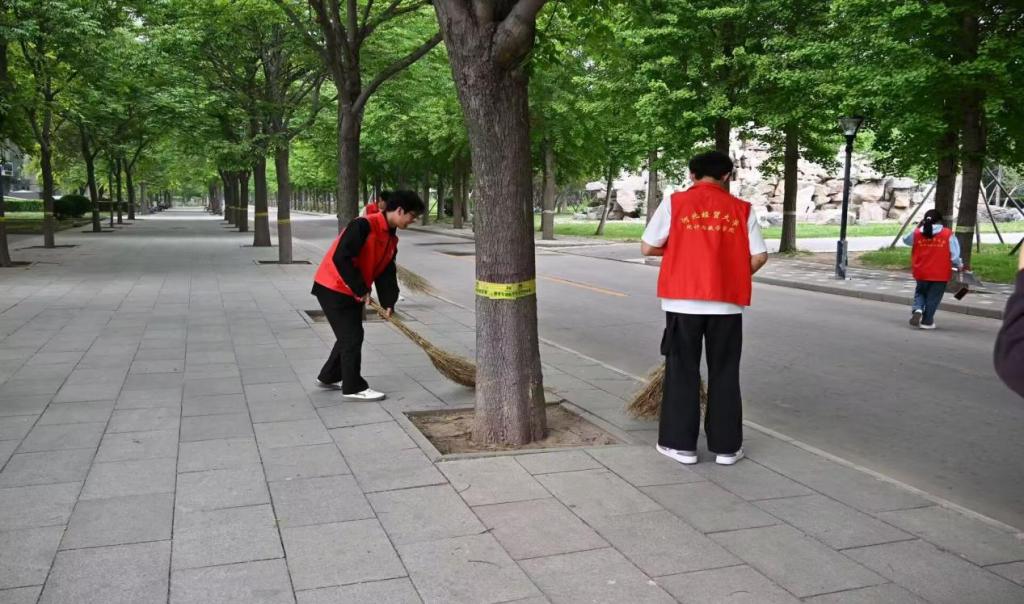活动现场,同学们分工明确、热情高涨。图书馆前,志愿者仔细清洁每一处角落,用劳动美化学习环境;校园道路与绿化带中,大家手持工具,认真清理杂物,让校园焕发生机。劳动过程中,同学们深刻体会到环卫工作人员的辛勤付出,进一步增强了尊重劳动、珍惜成果的意识。