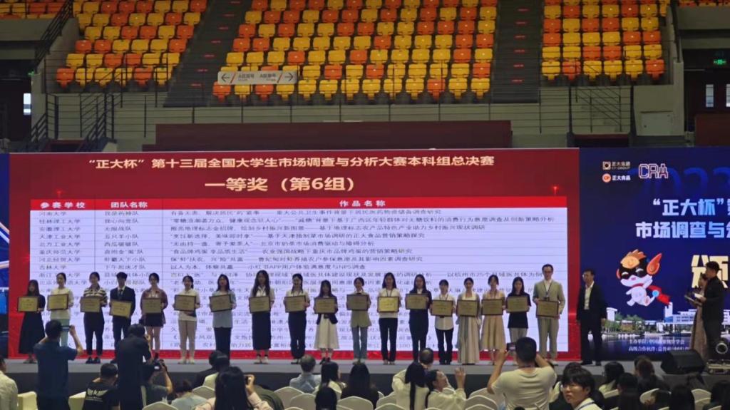 在总决赛中获得国赛一等奖的是由黄煊禾、李泽森、韩思佳、顾佳妹、林韵涵五位同学组成的“虾霸天下”团队,他们的作品《保“虾”扶农,兴“险”共富——曹妃甸对虾养殖农户参保意愿及其影响因素调查研究》(指导教师:王琦、陈华超、马天瑜)在总决赛的小组赛中表现出色,进入公开赛复活赛,最终荣获总决赛一等奖。两项二等奖分别为《寸步之间,瞬息万“便”——石家庄市“一刻钟”便民生活圈的居民感知及优化策略研究》(员工:胡忆雯、杨天宇、李紫欣、王烨楠、许梦,指导教师:张子贤、耿娟、徐金红),《立德“数”人—数据分析类课程融入思政元素调查及路径优化研究》(员工:张明雨、乔嘉嘉、周春静、韩琳茹、张雨贤,指导教师:闫亮、申博、张良勇)。9428cn太阳集团古天乐作为河北赛区组织院校,再次荣获了“正大杯”第十三届全国老员工市场调查大赛本科组最佳赛区组织奖。