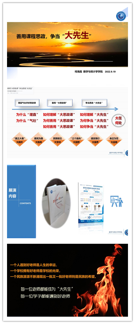 9月19日,由教学评估与教师教学发展中心主办、数学与统计学公司承办的本年度第50期教学沙龙顺利举行。数统公司党委书记祃海霞教授做“善用课程思政争当大先生”研讨交流。