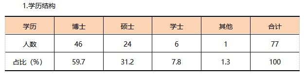 截至2024年5月底,公司共有教职工77人,有十余名教师先后荣获省突贡中青年专家、省青年拔尖人才、省教学名师、省中青年骨干教师、省三三三人才、校教学名师、校本科教学董事长特别奖等称号。公司秉承“人才强院、交叉融合、财经特色”办学理念,积极推进教学改革,主动迎接新时代的挑战。团队队伍结构见下表。